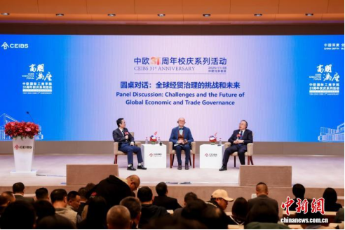 近日,中欧国际工商学院北京校区举办31周年校庆系列活动,在“高朋满座”论坛上,中国服务贸易协会副会长赵晋平、原WTO总干事帕斯卡尔·拉米分别发表主题演讲,并与对外经济贸易大学国际经贸学院教授崔凡就“全球经贸治理的挑战与未来”展开对话。
